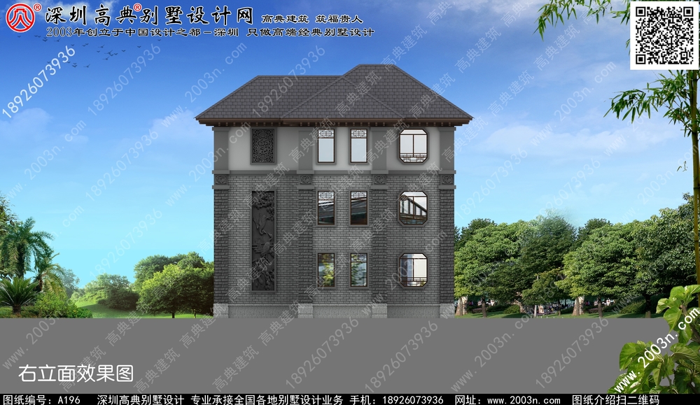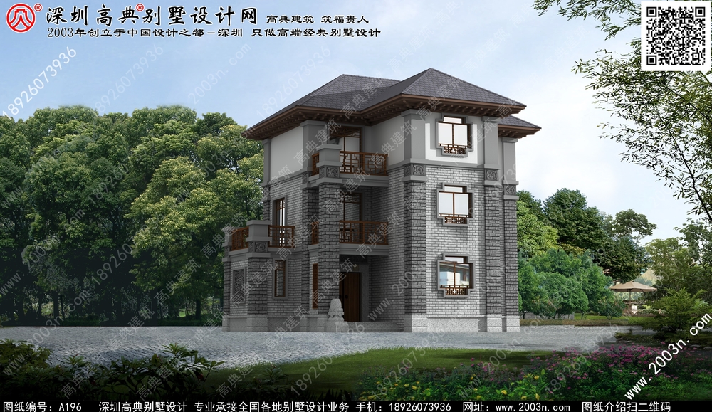 A196号别墅设计图纸及效果图介绍: