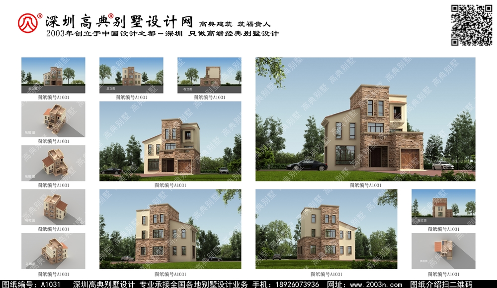 A1031号别墅设计图纸及效果图介绍: