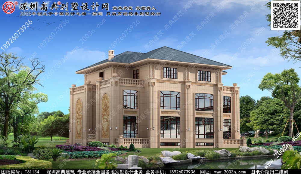 三层别墅设计效果图, 豪华别墅设计图, 欧式别墅外观设计