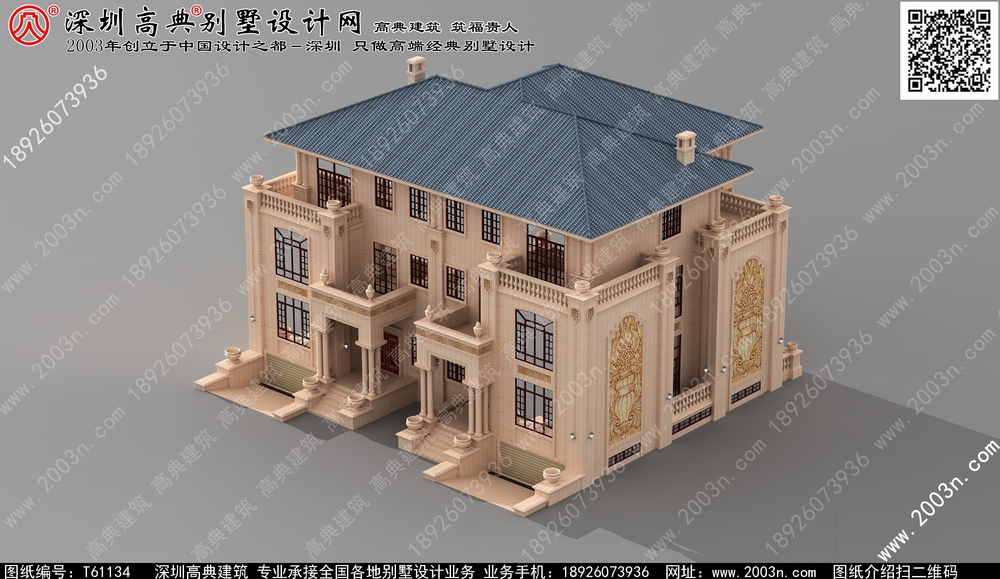 t61134号别墅设计图纸规格介绍: