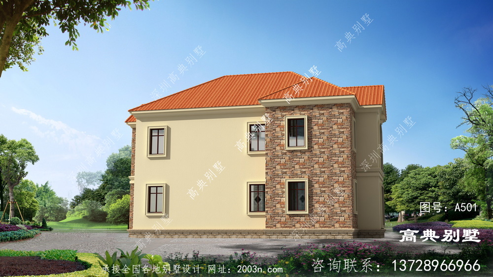下面这一款大气又美观的农村二层欧式风格别墅,占地仅169平方米,建造一栋和家人一起,享受高雅安静的自然生活!