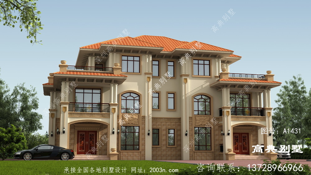 双拼欧式三层别墅外观设计效果图