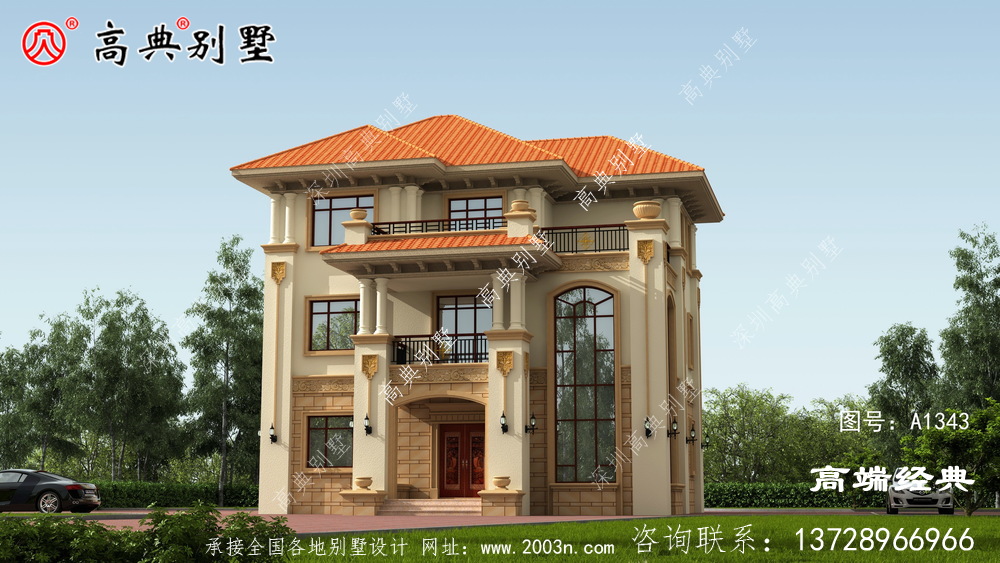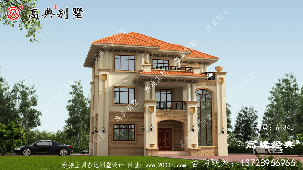 A1343号别墅设计图纸及效果图介绍: